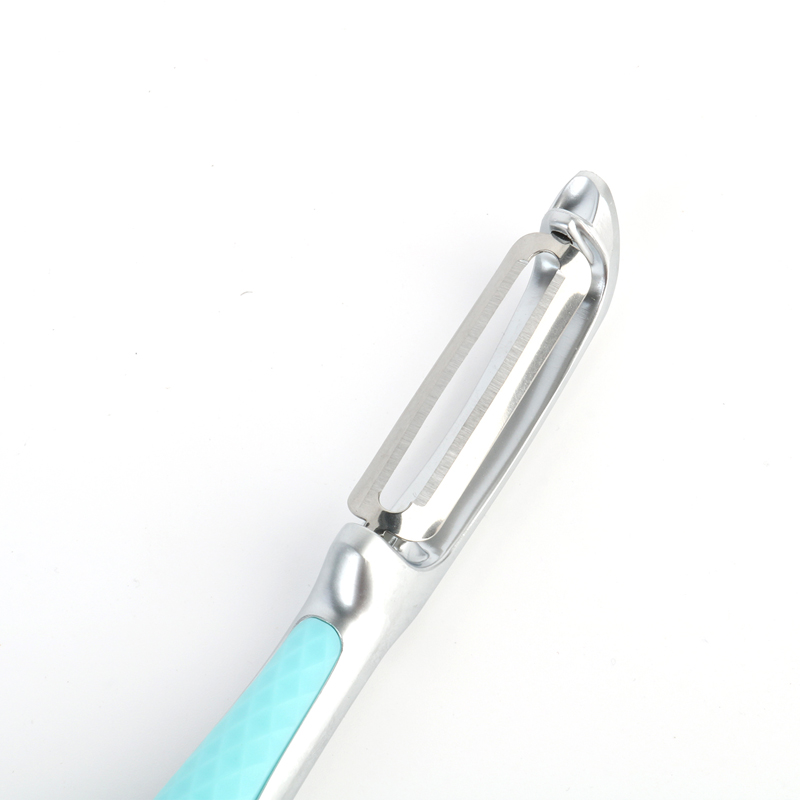 Šis mini cinko lydinio daržovių skustukas su šviesiai mėlyna spalva yra 17 cm ilgio ir sveria 82 gramus, todėl jis yra ekonomiškas, saugus ir patikimas virtuvės įrankis. Dėl unikalaus ir stilingo dizaino jis išsiskiria kaip aukštos kokybės buitinės virtuvės reikmenys.
