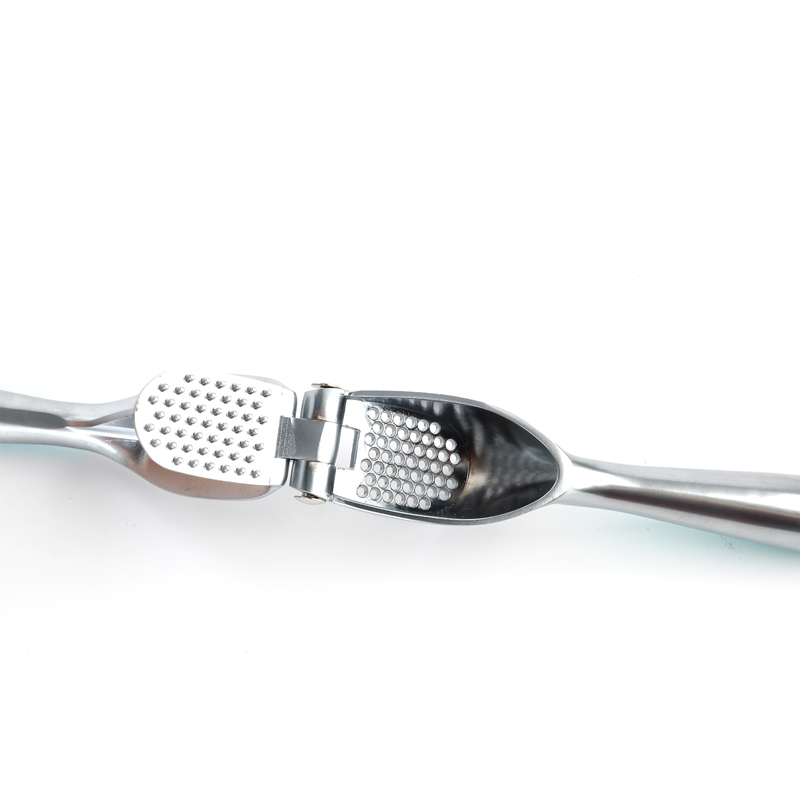 Česnakų presas pagamintas iš aukštos kokybės, aplinkai nekenksmingo cinko lydinio. Išlietas ir smulkiai poliruotas, jis padengiamas įvairių spalvų galvanizavimu. Kiekviena spalva yra suporuota su atitinkama makarūno stiliaus plastikine rankena, skirta apsaugoti nuo slydimo. Tai ne tik pagerina bendrą produkto kokybę, bet ir užtikrina, kad jis išliktų tolygiai blizgus ir švarus, kai kasdien patenka į vandenį, actą ir actą. naudoti. Naujo dizaino patvaraus cinko lydinio česnako preso skylutės česnakams išspausti yra tankiai išdėstytos apskritimo pavidalu. Kai spaudimo mechanizmas spaudžia žemyn ir veikia sverto principas, česnako pasta lengvai ir efektyviai išgaunama vienoda ir smulkia konsistencija, o tai žymiai pagerina gaminimo efektyvumą.