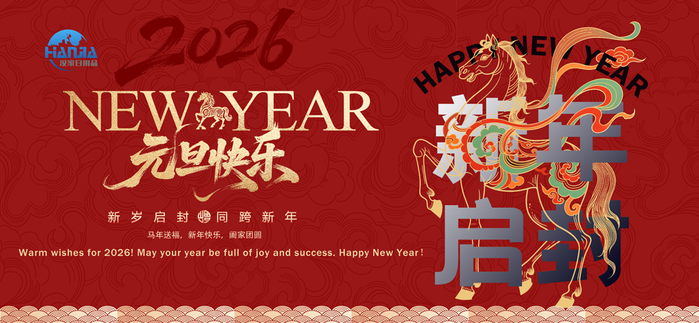 2026 m. sausio 1 d. minima tradicinė kinų šventė – Naujieji metai. Kasmet šiuo metu pasinaudojame galimybe apmąstyti savo pasiekimus ir trūkumus, tikėdamiesi, kad naujieji metai pasisektų ir pasiektų geresnių rezultatų nei buvo praeityje. 2025-ieji baigėsi, o „Jinhua Hanjia Commodity Co., Ltd.“ mūsų kelionė praeitais metais atrodo taip, kaip praeityje. užsiima gamyba ir importo-eksporto prekyba, išgyveno sudėtingus metus, kuriems įtakos turėjo pasaulinė ekonominė situacija.