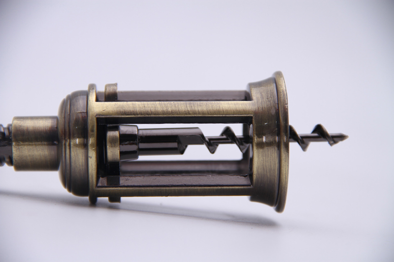 Šis vyno atidarytuvas unikaliai skiriasi nuo įprasto dizaino ir pasižymi dviem išskirtiniais elementais: senoviniu žalvario patina apdaila ir spiralės formos kamščio traukimo mechanizmu. Sendintas paviršius sukelia nesenstančio meistriškumo pojūtį, o naujoviškas spiralinis dizainas užtikrina lengvą ir elegantišką atkimšimą.