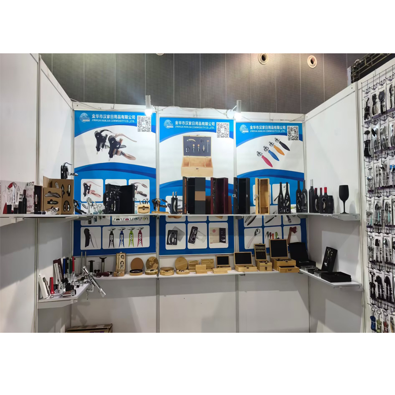 Jinhua Hanjia Commodity Co., Ltd., įsikūrusi tame pačiame administraciniame regione, kaip ir parodos vieta, ir per vieną valandą kelio automobiliu nuo Yiwu Small Commodities City, naudojasi būdingais regioninės ekonominės gamybos grandinės pranašumais. Pasinaudodama klestinčia Yiwu tarptautine el. prekybos verslo aplinka, mūsų įmonė atrinko septynias produktų serijas ir šimtus prekių, tinkamų vietiniams verslininkams, komercinėms įmonėms. apima namų ir virtuvės prekes, vyno aksesuarus, tokius kaip nerūdijančio plieno ir legiruoto vyno kamščiatraukiai, vyno kamščiai, šampano įrankiai, česnako presai, riešutų traškučiai, skardinių atidarytuvai, skustukas, mėsos minkštiklis, kokteilių plaktuvai, nerūdijančio plieno kolbos, vyno grafinai, medinės ir PU dėžutės vyno rinkiniai ir kt.