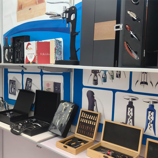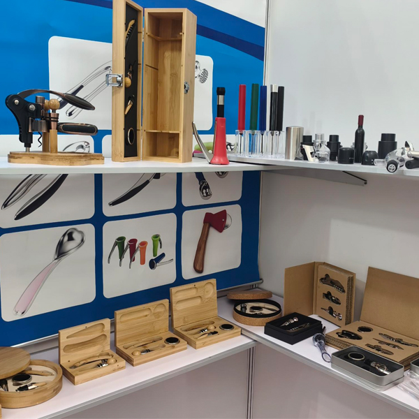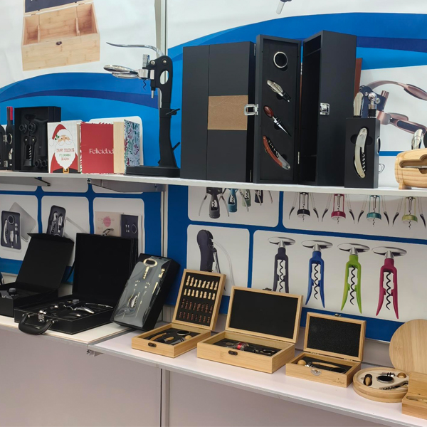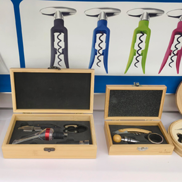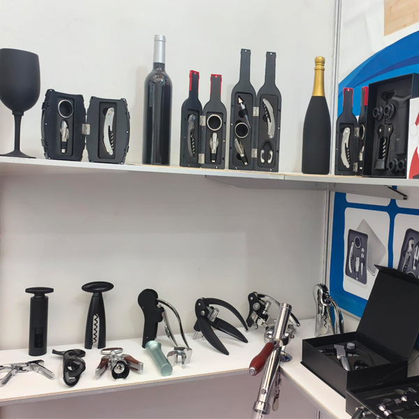 Mūsų gaminių asortimentą sudaro įvairūs nerūdijančio plieno ir legiruotojo vyno atidarytuvai, kamščiatraukiai, šampano įrankiai, česnako spaudyklos, riešutų traškučiai, skardinių atidarytuvai, skustuvai, mėsos minkštikliai, kokteilių plaktuvai, nerūdijančio plieno kolbos ir įvairūs vyno rinkiniai, pagaminti iš medžio arba PU, taip pat vyno dėžės.
