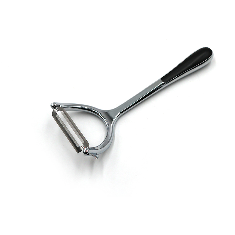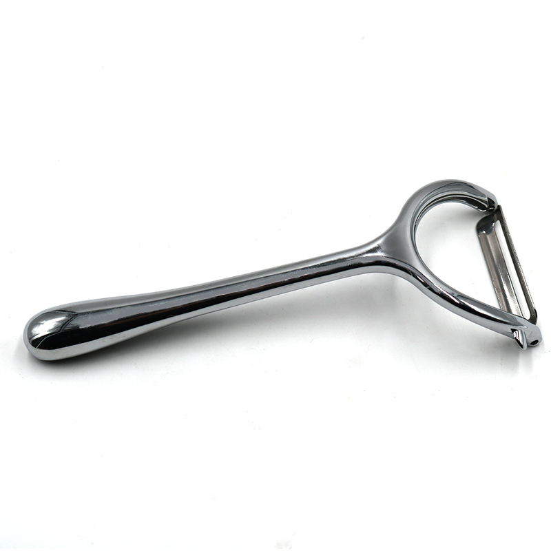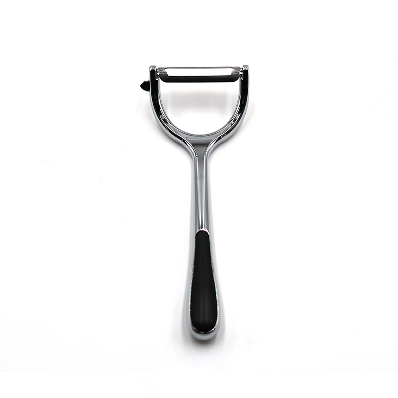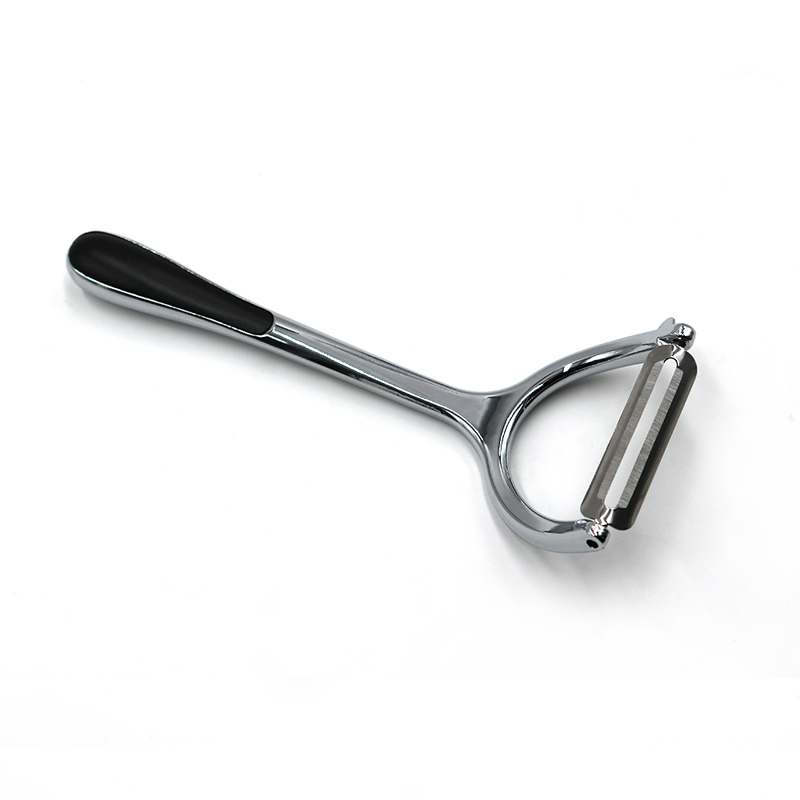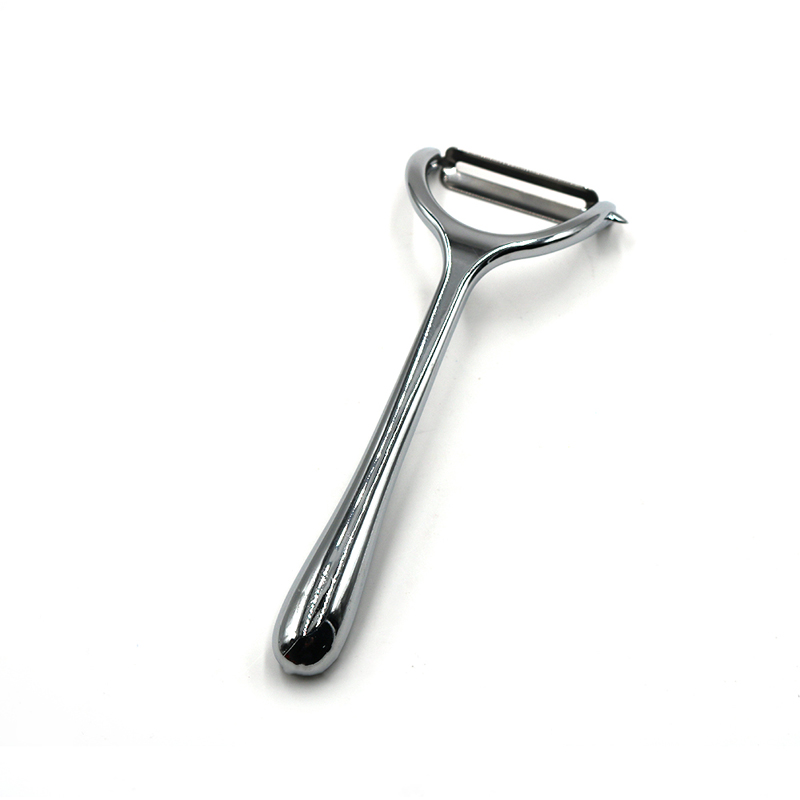 Šis cinko lydinio didelio lanko skustukas, nerūdijančio plieno peiliukas, daržovių vaisių skustuvas yra darnaus dizaino serijos dalis, kurią sudaro daugybė funkcinių įrankių, įskaitant vyno atidarytuvus, ledų šaukštus, mėsos minkštiklį, graikinių riešutų traškučius, skardinių atidarytuvus, česnako spaudytuvus, picos peilius ir alaus atidarytuvus. idealus pasirinkimas namų apyvokos prekių mažmenininkams ir dideliems prekybos centrų tinklams.